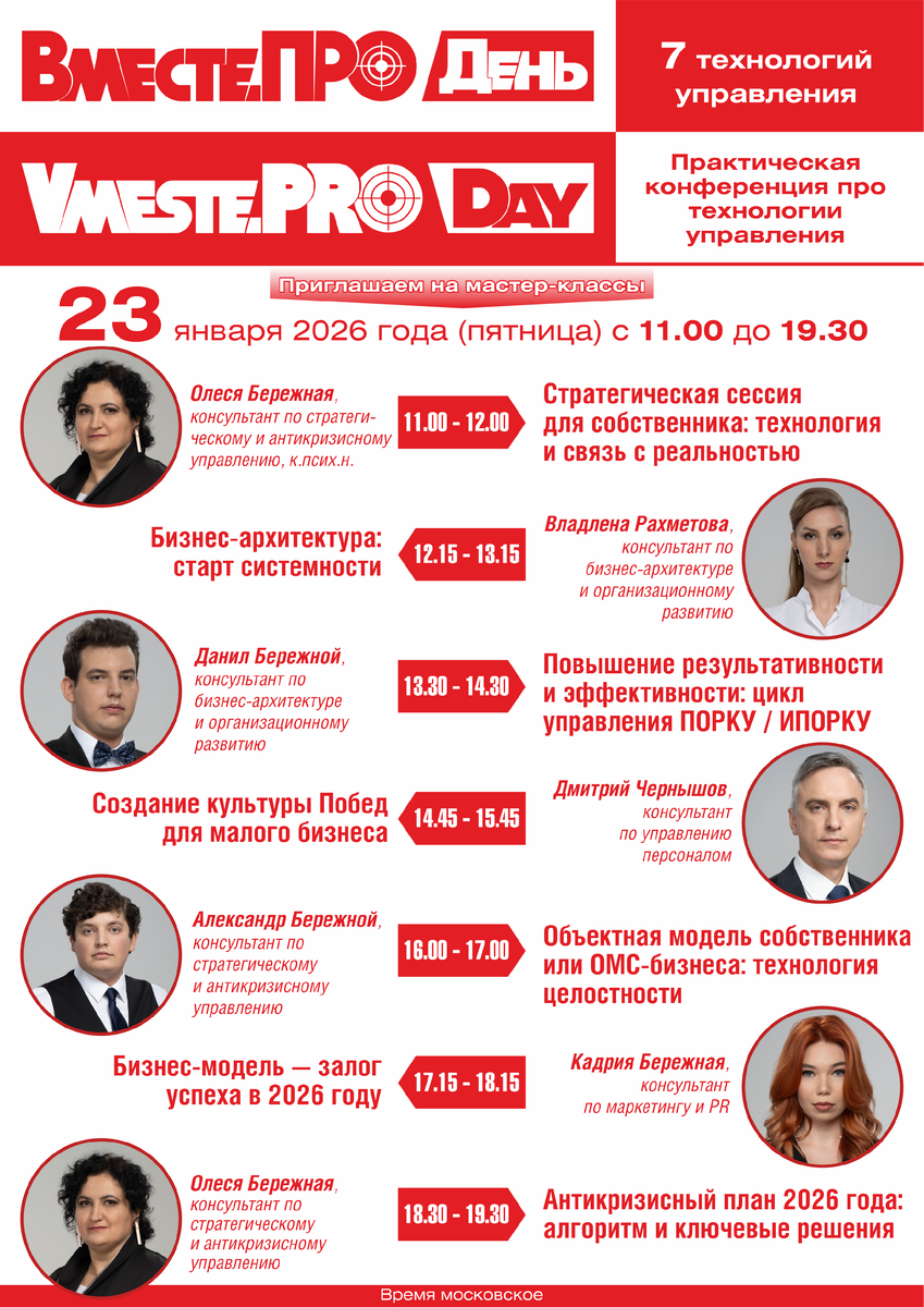 Мастер-класс: «Стратегическая сессия для собственника: технологии связи с реальностью». · 12:15 – 13:15 | Владлена Рахметова, консультант по бизнес-архитектуре и организационному развитию, специализация — построение систем «с нуля».