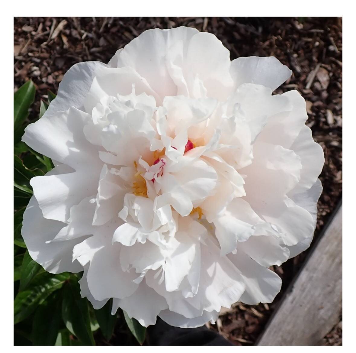 Новинка! ORIGINATOR: Valerie Ames ( Canada) Группа: Lactiflora DATE:2024 Цветки полумахровые, распускаются в конце сезона, сначала телесно-розовые, затем быстро становятся почти белыми, часто с сохранением светло-розового оттенка на верхних лепестках. На внутренних лепестках иногда видны красные края. Цветки диаметром 12,75 см (5 дюймов), направлены вверх, в среднем по три на стебле. Охраняющие лепестки чашевидные, округлые, обычно 4,5 см (1,75 дюйма) в ширину. Внутренние лепестки бахромчатые и с выемками. Обладают сильным ароматом. В среднем цветки имеют два плодолистика с тёмно-розовыми рыльцами нормальной формы. Тычинки длиной 1,25–2 см (0,5–0,75 дюйма). Производит пыльцу; семенная продуктивность не отмечена. В зрелом возрасте растения достигают 58,5 см (23 дюймов) в высоту и имеют широкоовальную зелёную листву. Во время появления на свет листва имеет красноватый оттенок. Растение низкорослое и широкое; механическая опора не требуется. Невысокое кустистое растение с множеством оч