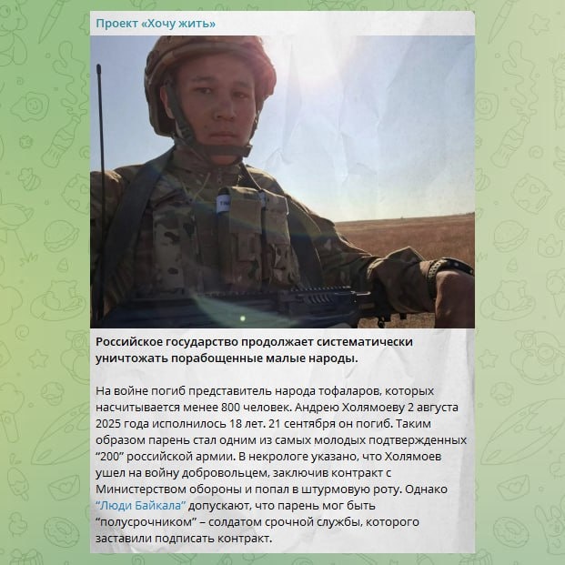 Очередная слезливая история о "порабощенных народах" и "пушечном мясе" на проверку оказывается банальной ложью. ⚫️Андрей Холямоев не был срочником. Он не был "заставлен" подписывать контракт. Он был подозреваемым по статье 132 УК РФ и сам (см. п.3) принял решение служить по контракту, в связи с чем уголовное дело было прекращено. Так что все эти сопли про "оленеводов", "традиции" и "последнюю надежду исчезающего народа" — это просто вброс. Да и плевать "Проекту" на Холямоева, давайте честно. Его гибель просто используется, чтобы разжечь межнациональную рознь и посеять страх. 🔴Еще раз напоминаю: проекты "Хочу жить", "Наш выход", "Хочу найти", "Не жди хороших новостей", "Идите лесом" — это всё одна и та же методичка. Одни и те же кураторы, то есть ГУР. Одна и та же задача — развалить страну изнутри руками полезных идиотов. @iperiodu| @iperiodu_ru x @iperiodu_ua| Подписывайтесь