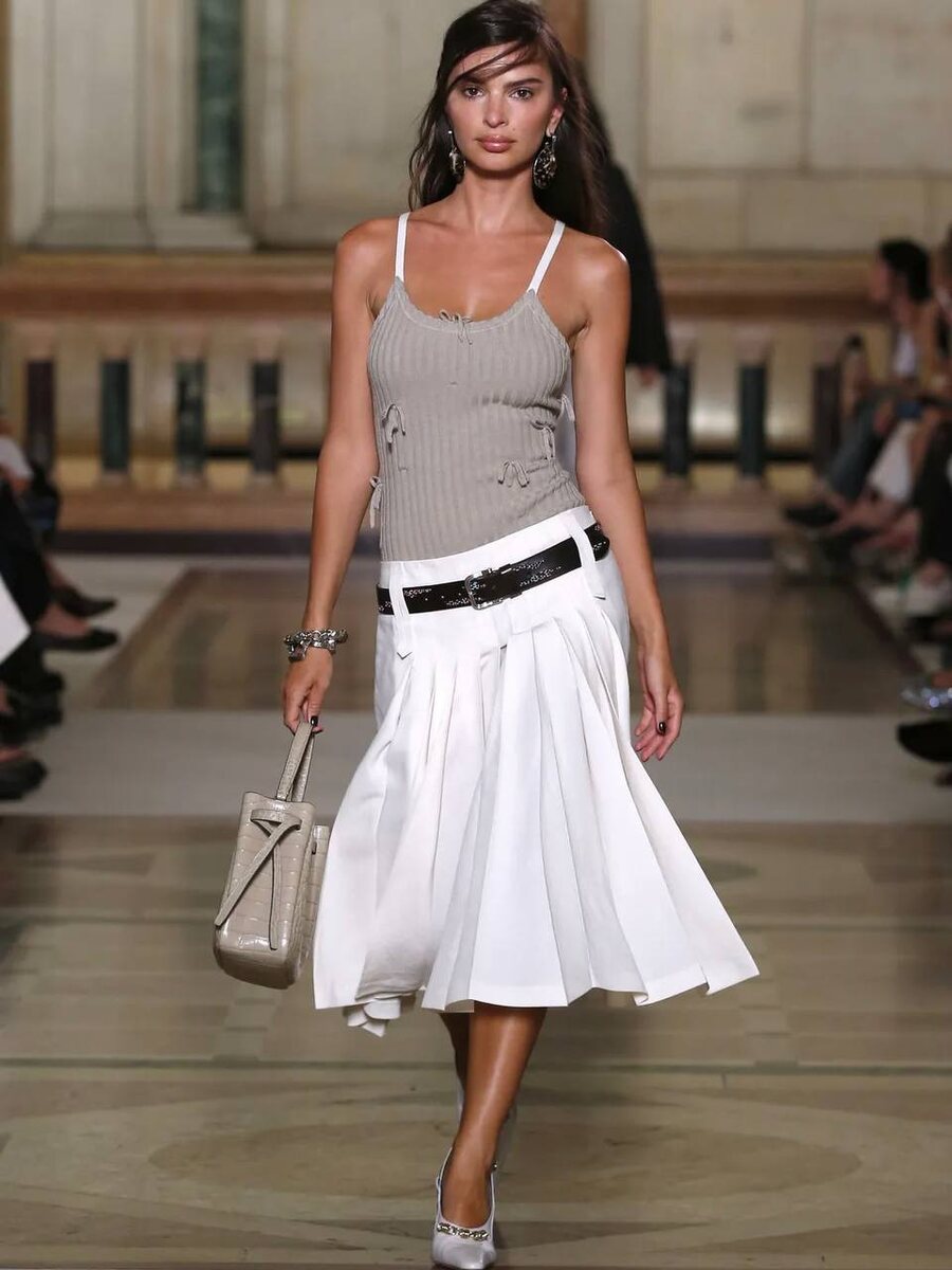 Еще одно трендовое сочетание, которое точно стоит запомнить в 2026-м: юбка + ремень на бедрах.