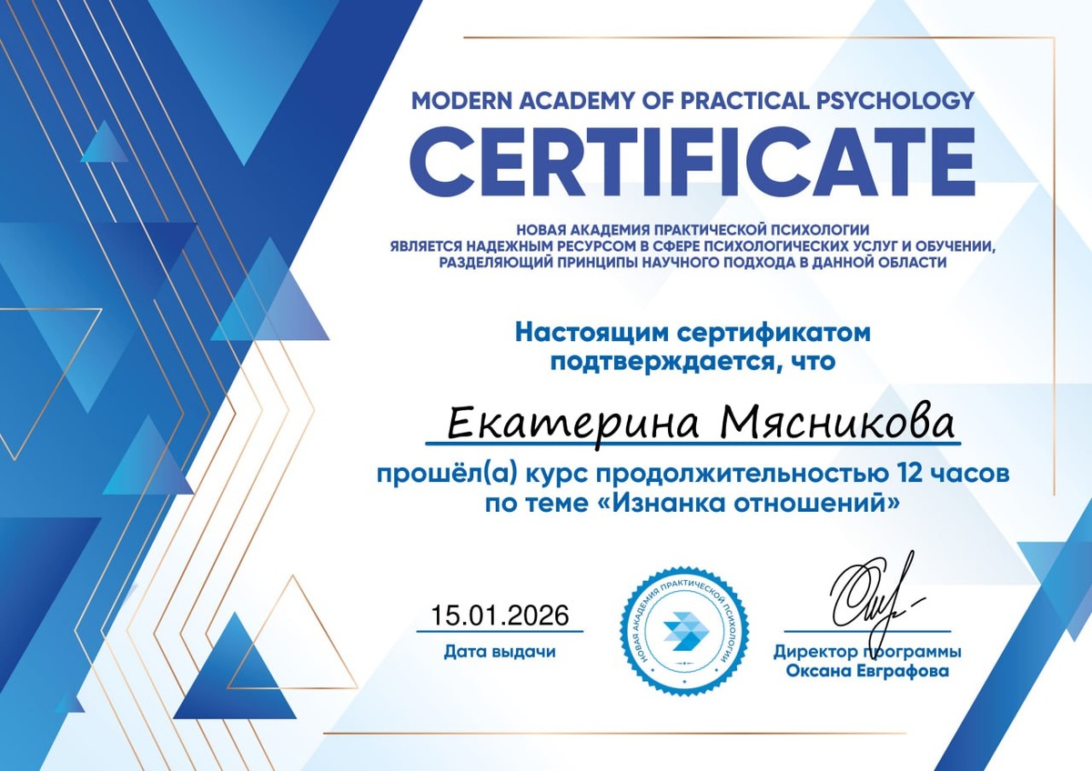 : ❤️ 5 терапевтических сессий "ИЗНАНКА ОТНОШЕНИЙ" ❤️ Данный формат терапии подразумевает несколько встреч с домашними заданиями. В рамках 5 сессий мы с вами: 🔹Проживем прошлые отношения и при воспоминаниях о них вы начете испытывать совершенно другой спектр эмоций. 🔹Измените свой взгляд на ситуации в прошлых отношениях и научитесь управлять своими мыслями и эмоциями в различных ситуациях в нынешних отношениях. 🔹Научитесь воспринимать все грани человека, целиком. Что поможет воспринимать партнёров равнозначными и сделать отношения более гармоничными. 🔹Проанализируете свои роли в жизни и смогут привести их к балансу, что положительно отразиться в том числе и на сфере отношений. Если интересно — пишите)⤵️ С любовью🩷ваш ретроградный психолог) #развиваюсь #обучение