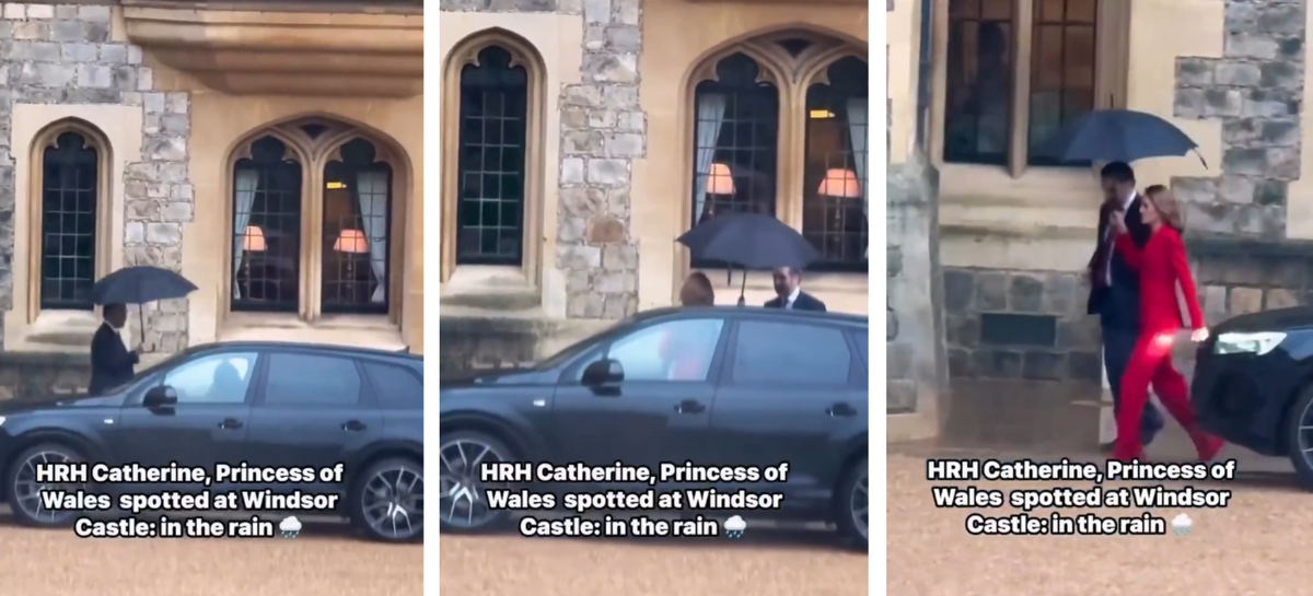 В Сети завирусился видеоролик прибытия Кэтрин, принцессы Уэльской, на вчерашний вечерний прием в Виндзорском замке. Напомню, принцесса Уэльская 15 января организовала прием (первое в нынешнем году мероприятие королевской семьи такого формата), чтобы отметить достижение женской сборной Англии по регби "Красные розы", выигравшей в сентябре 2025 года Кубок мира. В ролике видно, как Кэтрин подъезжает к входу - на небольшом черном автомобиле, за рулем которого она находилась лично. Машин охраны видно не было. Если охрана при ней и была, то чисто номинально, Кэтрин находилась на и без того тщательно охраняемой полицией территории Виндзора. Подъехав к месту проведения мероприятия, Кэтрин вышла из авто на улицу, где ее поджидал всего лишь один встречающий, который передал ей зонт и принцесса немного забавной походкой - на каблуках по гравию - вошла в замок. Видеоролик привлек внимание поклонников королевской семьи в социальных сетях. Многие восхитились "простотой и непринужденностью" принцес