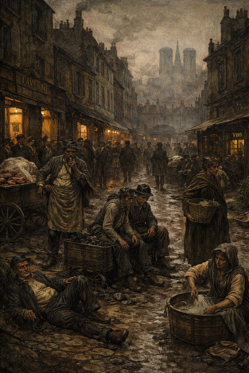 Это утомляет читателя, потому что лишает иллюзии контроля. Мы хотим верить в свободу воли, а Золя показывает инерцию. Его герои не принимают решений — они катятся по наклонной. Завод гудит, рынок шумит, голод грызет — и человек просто подчиняется ритму этой гигантской мясорубки.