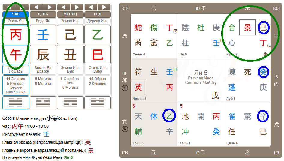 Очень хорошая нефритовая дева в Час лошади на Юго-Западе. Тут и главне ворота сцены, и отдыха, Тай Суй года, Небесное сердце Лю хэ и Небесная помощь - всё порождает. Особенную пользу несёт рождённым: Гуй 癸, Синь 辛, Джи 己, И 乙: