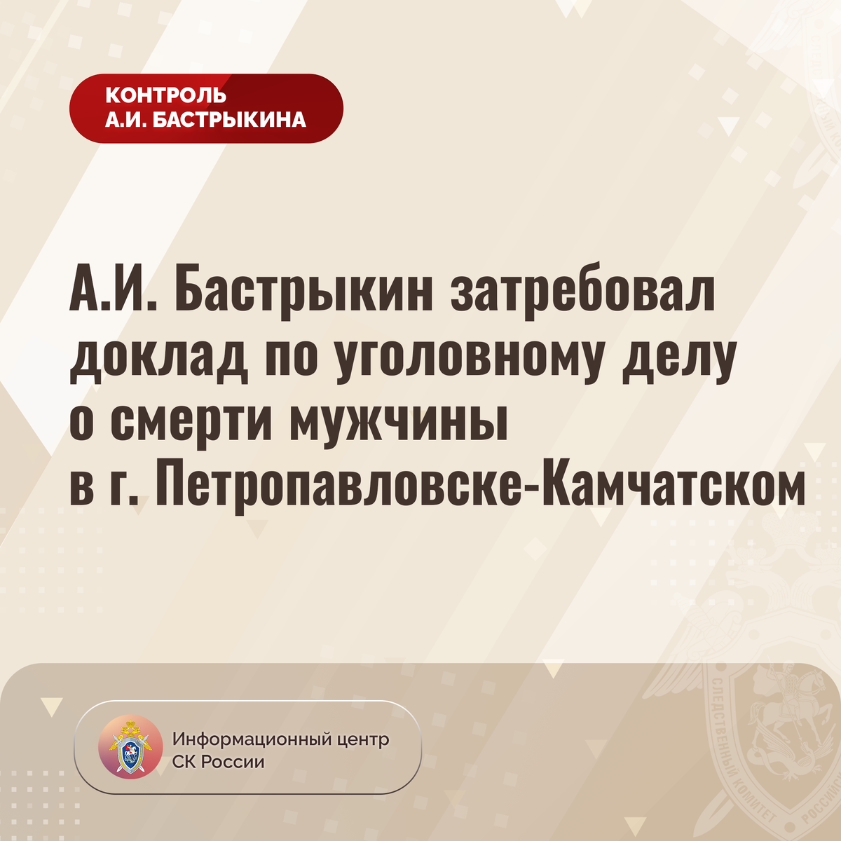А.И. Бастрыкин затребовал доклад по уголовному делу о смерти мужчины в г. Петропавловске-Камчатском