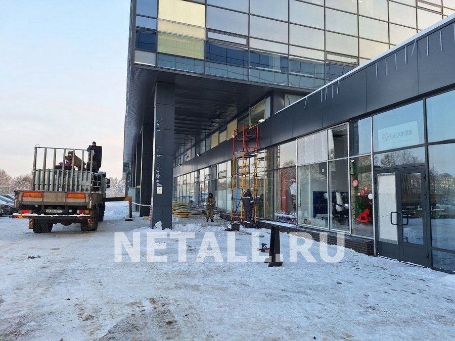 В технопарке «Элма» началась замена фрагментов остекления фасада, поврежденных в результате налета беспилотника в мае прошлого года