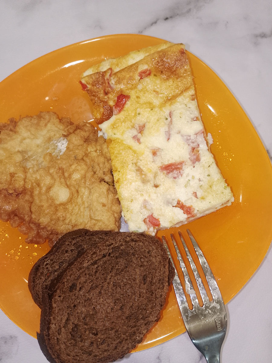 Съела омлет с помидорами и