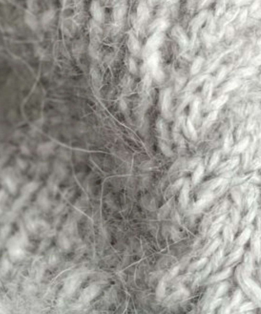 2. Объемная пушистость — характерна для пряжи с мохером, где длинные остевые волоски создают эффект легкого, воздушного гало вокруг изделия.