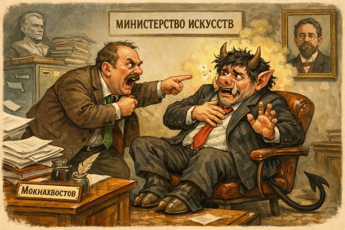 – Говорю тебе, от Мохнахвостова пахнет серой! – шептал долговязый чиновник Сушков своему коллеге Горемыкину, пока тот в столовой с аппетитом жевал сочную сардельку, запивая её сладким чаем. – За такие деньги и в нашем министерстве? – усмехнулся Горемыкин. – Подумай сам, на кой чёрту здесь служить? Вот если где пожирнее: промышленность или энергетика. Чёрт у нас тут только один – мой начальник. Я ему письмо три раза на подпись носил, а он… Но Сушков не стал выслушивать роптаний коллеги, махнул рукой и отправился по служебному долгу. Однако сердце его было не на месте. Он твёрдо убедил себя, что чиновник из соседнего департамента Мохнахвостов, с которым он лишь однажды столкнулся в канцелярии – не кто иной, как самый настоящий чёрт. И подозрения эти имели под собой некую основу. Кроме запаха серы, который оставлял после себя Мохнахвостов, Сушков никогда не видел у него тени. Ещё Мохнахвостов носил странные ботинки необыкновенно большого размера и, очевидно, очень неудобные. Они всё время