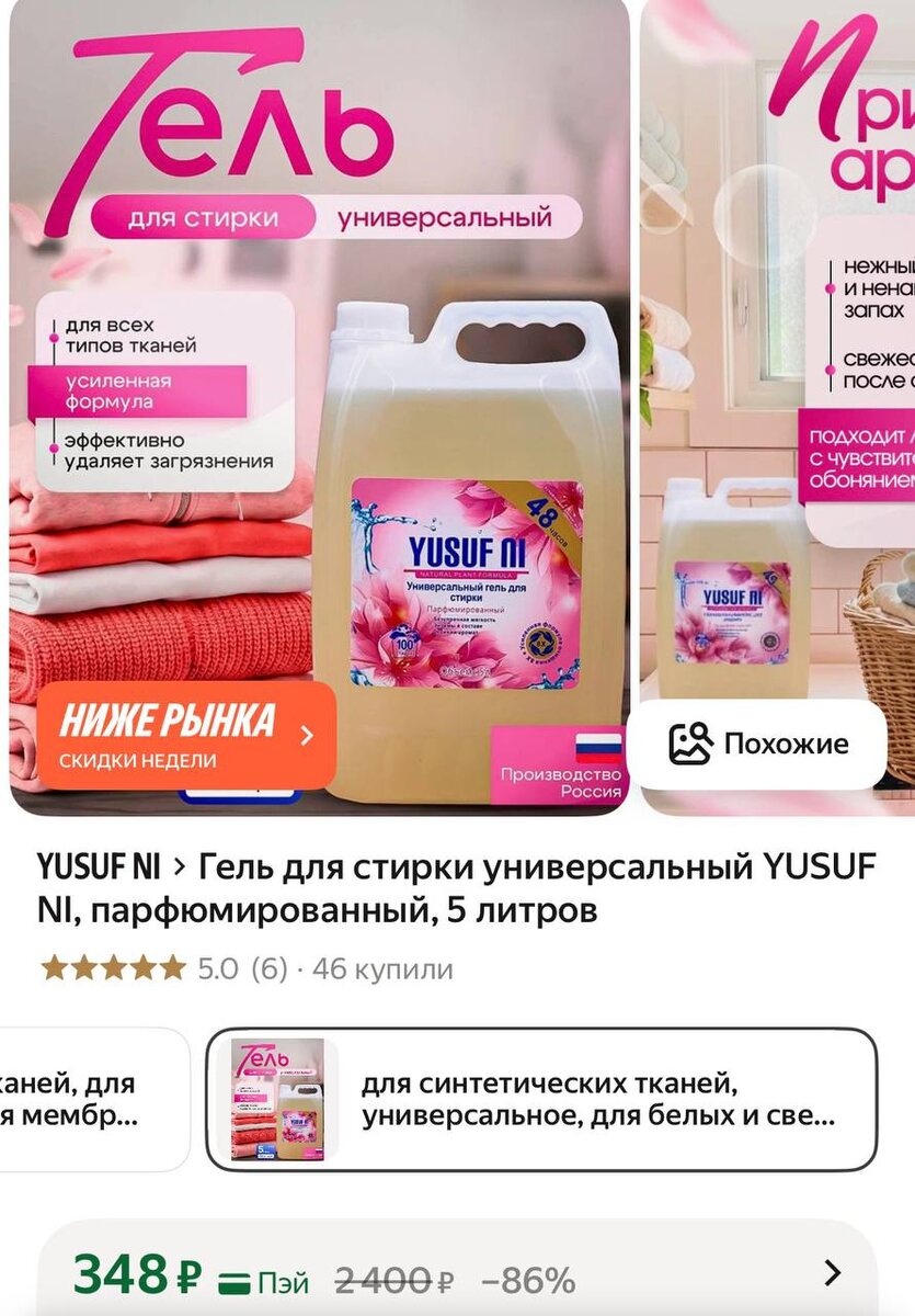 😔🫨😴Гель для стирки универсальный YUSUF NI, парфюмированный, 5 литров