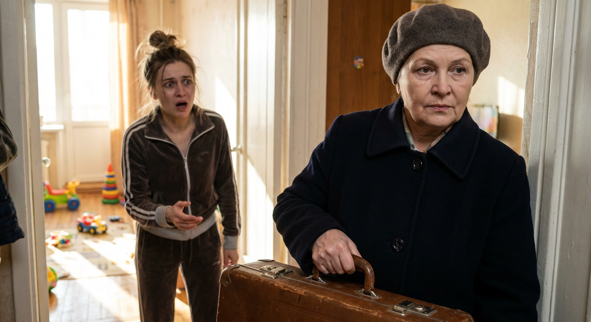 Галина Петровна стояла в коридоре, сложив руки на груди. Она не улыбалась. Рядом с ней стоял большой дорожный чемодан. Тот самый, старый, советский, но надежный.