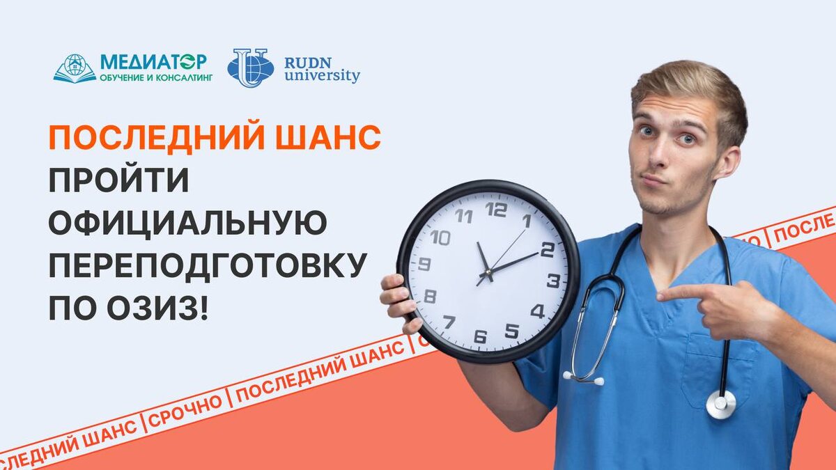 ! Последний шанс пройти официальную переподготовку по ОЗИЗ! Уважаемые коллеги, срочная новость! Университет РУДН одобрил последний поток в старом формате по программе профессиональной переподготовки Организация здравоохранения и общественное здоровье. Это последний шанс пройти легальное обучение по программе в вузе с лицензией на ординатуру (напоминаем, с 2024 года программу могут реализовывать только организации, имеющие лицензию на ординатуру по ОЗИЗ). 📌Прием заявок на сайте: https://mediator-med.ru/orgzdrav Совместно с Университетом РУДН мы разработали совместную программу профессиональной переподготовки по программе «Организация здравоохранения и общественное здоровье». – Очно-заочное обучение – Ведущие спикеры – Возможна рассрочка платежа – Полностью легальное обучение, так как кафедра имеет лицензию на ординатуру – Вы получаете диплом о профессиональной переподготовке РУДН Программа разработана на основании лицензии РУДН на осуществление образовательной деятельности №