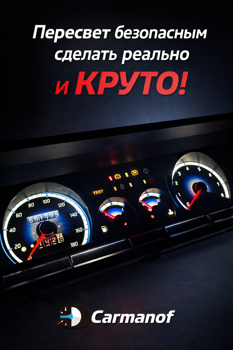 Заводская подсветка салона рассчитана на массового водителя. Она нейтральна, сдержанна и редко подчёркивает характер автомобиля. Пересвет — это возможность сделать салон по-настоящему своим, не нарушая логику автомобиля и требований безопасности. Главное — понимать, что и как можно менять. Пересвет — это замена или доработка штатной подсветки приборов, кнопок и элементов салона с сохранением функционала. Речь не о «кислотных» цветах ради эффекта, а о грамотной работе со светом. Правильно выполненный пересвет: 1. Индивидуальная цветовая схема Можно настроить подсветку под стиль салона: тёплые оттенки для классики, холодные — для спортивных версий, нейтральные — для повседневной езды.