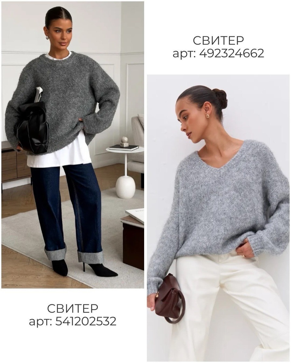 Иногда стиль строится не на яркости, а на точности. Сложные серые оттенки, мягкая фактура, выверенный объём и спокойные сочетания — это та самая формула, благодаря которой даже самый простой комплект выглядит как продуманная капсула. На фото — как раз такие вещи: свитеры и кардиганы, которые легко носить каждый день, но при этом они «держат» образ, вытягивают силуэт и добавляют ощущение ухоженности.