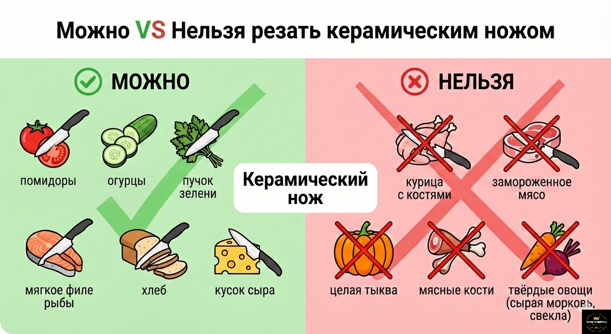 Керамический нож — это узкоспециализированный инструмент для мягких продуктов, а не замена всем ножам на кухне.