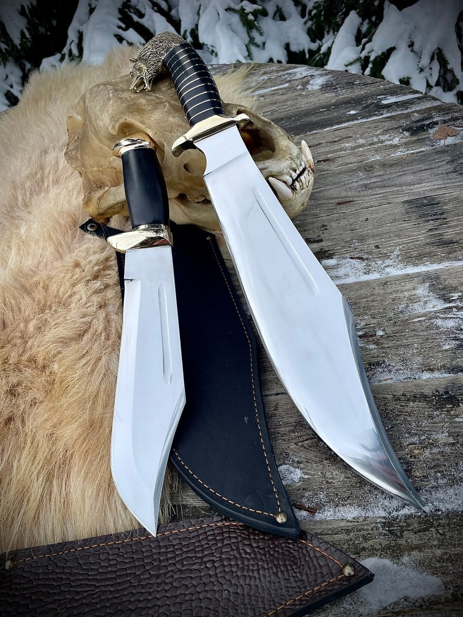 Для усмирения неправильных пчел, которые несут неправильный мед ⚔️🐝 Существует очень правильный медведь. «Чёрный Гризли» ⚔️🐻 Яркий представитель линейки Great Knife. И в отличие от «Папаши Джо», это не хардкорный бездумный рубака ⚔️👊, а сочный, вальяжный резак — как, собственно, и сам мишка Гризли, которому ничего не нужно доказывать, потому что он хозяин леса ⚔️💪🐻. Нож «Крокодил Данди» (версия «Стандарт») по сравнению с ним — просто зубочистка, хотя и имеет клинок длиной 250 мм ⚔️☝️. Отмечу, что профиль клинка имеет выпуклую линзу ⚔️👌, что положительно сказывается как на внешнем виде ⚔️🔥, так и на режущих свойствах ⚔️👌. Каждый такой «медведь» комплектуется подвесной системой для ношения на груди ⚔️☝️. 1. Защита. За таким точно можно спрятаться, потому что полная длина ножа — 51 сантиметр ⚔️🛡. Да и ширины клинка хватит, чтобы большую часть грудной клетки закрыть ⚔️👌. С толщиной обуха тут вообще вопросов нет: 7+ мм — в общем, почти бронник ⚔️🛡. 2. Вес — почти как у сред