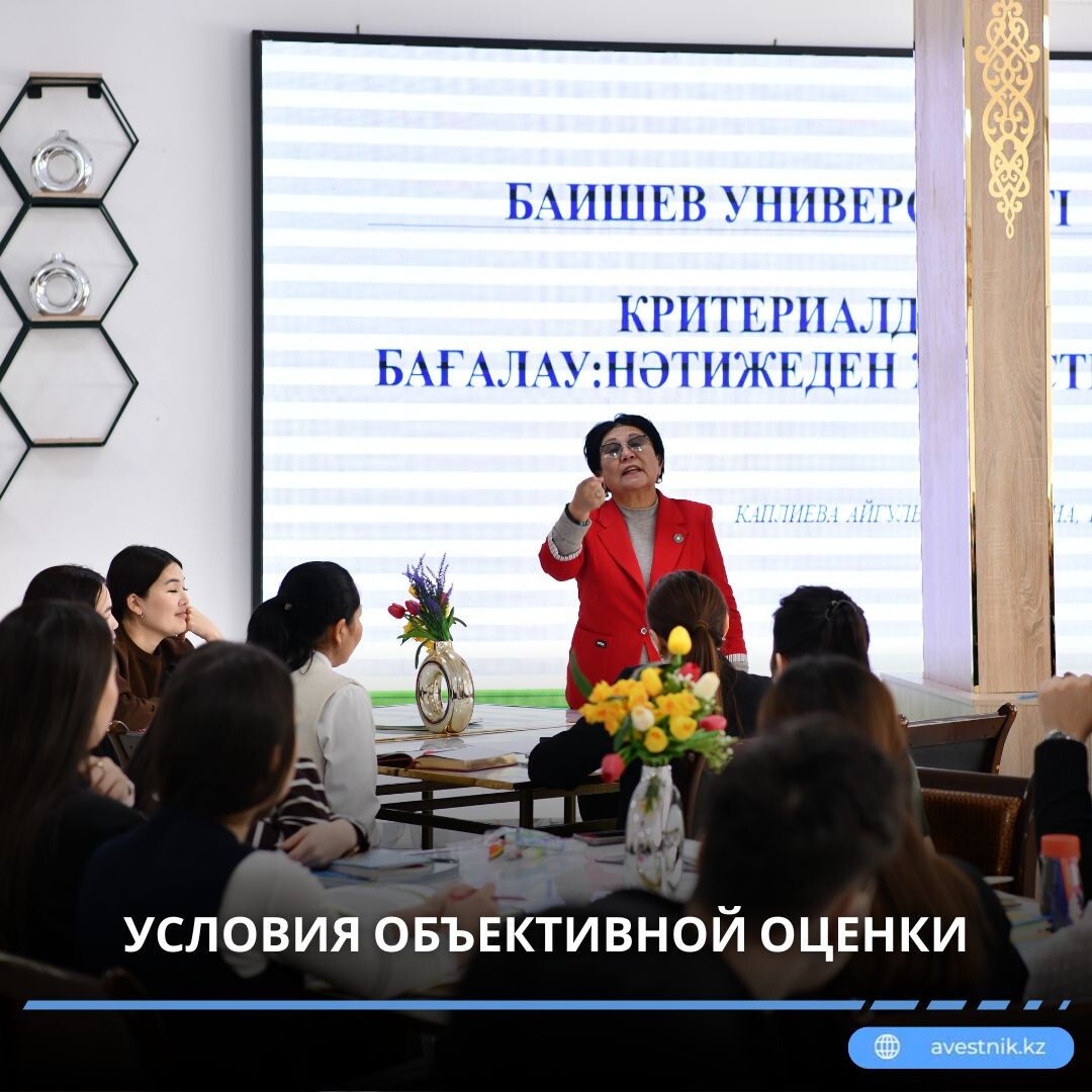 🎓 По инициативе Высшей школы естественно-гуманитарных наук Баишев университета был организован семинар на тему «Критериальное оценивание: от результата к успеху». 🏢 Мероприятие, приуроченное к 30-летию университета, собрало учителей начальных классов восьми общеобразовательных школ города Актобе, а также профессорско-преподавательский состав Баишев университета. 💬 — Семинар проводится в рамках реализации задач, обозначенных в Послании Президента и концепции «Справедливый Казахстан». Его главная цель — разъяснить педагогам пути эффективного применения методов критериального оценивания, повысить качество образования, совершенствовать механизмы объективной и справедливой оценки знаний учащихся, — отметила старший преподаватель университета Динара Комарова. 👩🏫 Ассоциированный профессор (доцент), кандидат педагогических наук Айгуль Каплиева подробно рассказала о работе по развитию мышления школьников и повышению качества образования посредством системы критериального оценивания: