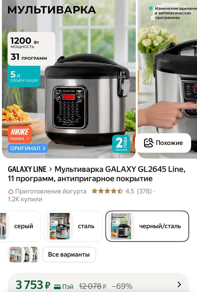 😔😦😲😔Мультиварка GALAXY GL2645 Line, 11 программ, антипригарное покрытие