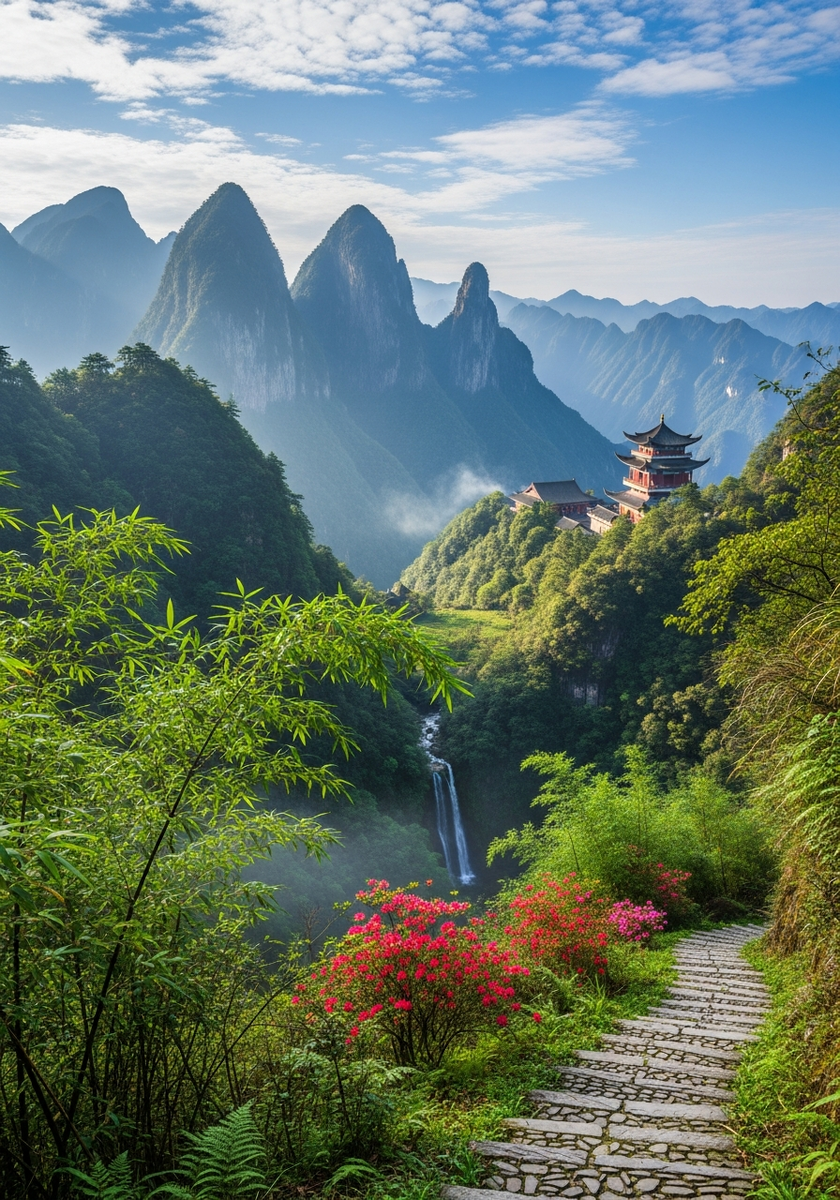 Эмэйшань — одна из четырех священных буддийских гор Китая, воплощение духовности и природной красоты. Вершина уходит в облака на высоту более 3000 метров, открывая паломникам и путешественникам незабываемые виды.