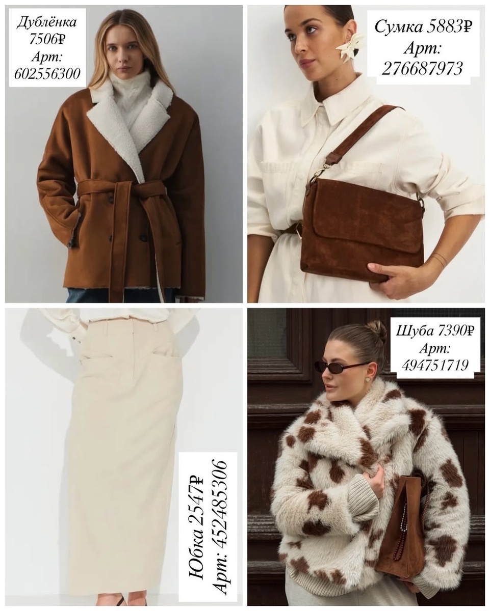 Есть вещи, которые «делают» весь образ без лишних усилий: верхняя одежда с характером, правильная сумка, одна выразительная пара обуви и база, которая держит силуэт. В этой подборке — именно такие находки с фото: спокойные оттенки, благородные фактуры, чуть винтажа и много носибельности. Я разберу каждую позицию строго по порядку артикулов, с подробным описанием и стилистическими подсказками, чтобы вы могли собрать комплект сразу, не сомневаясь.