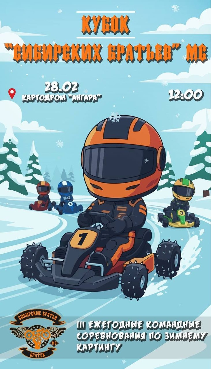 Чемпионат по зимнему картингу (Братск) Мотофесты RSS Друзья, рады сообщить, что третий ежегодный чемпионат по зимнему картингу состоится Вся информация на афише, положение о проведении соревнований прикреплено ниже. По всем вопросам к Михаил Федкевич https://psv4.userapi.com/s/v1/d2/7E6qxIn-8Vcqto6FjgkcXZic_FakoUnt1qjV4KW2p2x65xp6d2SIZXGRXZGshp0x5DcHJI7hKr61JOx8NBfLruRPhyG0u1iZiO33gitdHjVsxUBayZf38Z7aZLZxL0WFKlEtqTgvOFSr/2026_Polozhenie_Zimnii_774_karting_2026.docx Состоится: 28.01.2026 Место проведения: Братск #Братск #Мотофесты @motofesty