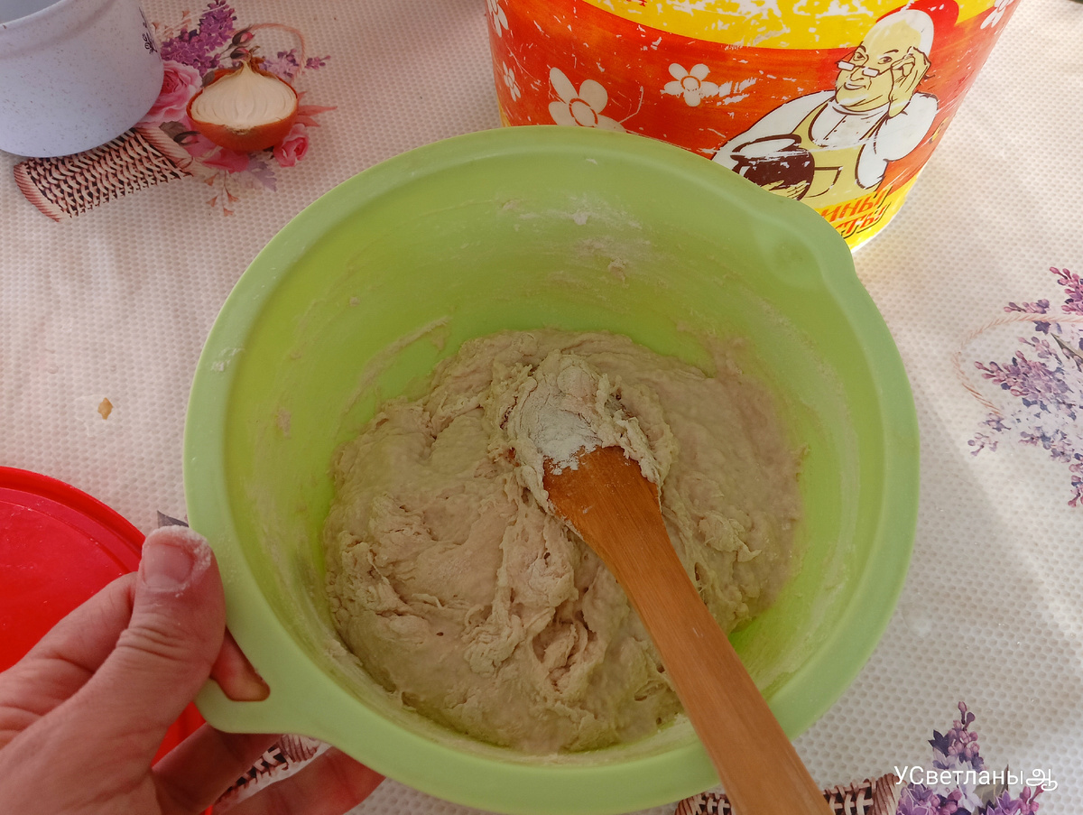Утро началось с теста. У меня как-то недавно подписчица спросила, как я делаю такое пышное тесто? Точных мерок пропорций я не знаю, так как делаю на глаз. В тёплой воде развожу пол пакетика сухих дрожжей, добавляю сахара, соли и немного вливаю подсолнечного масла. И тут же делаю тесто, добавляя понемногу муки.