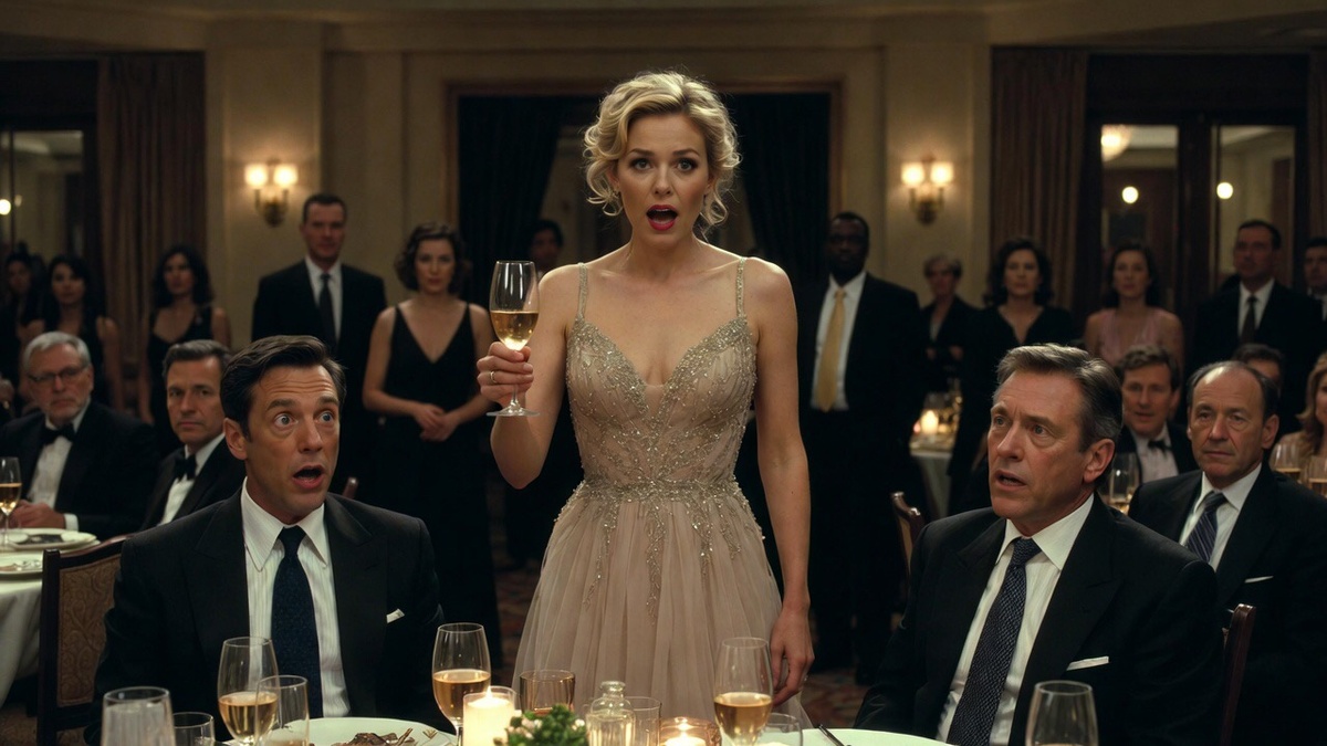 В зале стало тихо. Артём замер с бокалом, улыбка прилипла к лицу.