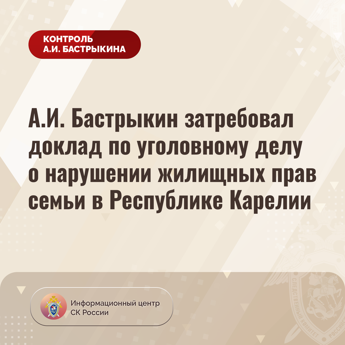 А.И. Бастрыкин затребовал доклад по уголовному делу о нарушении жилищных прав семьи в Республике Карелии