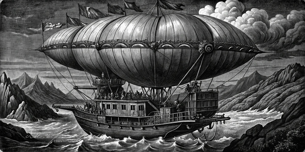 Капитан Горацио Финтикл, гений с взъерошенными бакенбардами и моноклем, застывшим в глазу от былой любопытной ситуации с паяльником, стоял на капитанском мостике своего детища — гибридного судна «Воздушный Кашалот». Корабль был шедевром инженерной дерзости. Его нижняя часть — настоящий стальной клинок с паровыми винтами, вспарывающий волны. Верхняя же представляла собой дирижабль из прошедшего пропитку шелка, удерживаемый над палубой ажурной системой из латунных ферм и медных труб. От него во все стороны, как щупальца, отходили переходные мостки, смотровые площадки и трубы, источающие клубы пара с ароматом угля, масла и лавандового одеколона кока. «Кашалот» плыл и летел одновременно, слегка подпрыгивая на волнах и покачиваясь на воздушных потоках. Цель: пересечь Тихий океан, чтобы доставить груз — ящик с особо ценными, вечноцветущими орхидеями и личного померанского шпица леди Агаты Мерриуэзер по кличке Сэр Пуфик. Проблема была в Сэре Пуфике. Песик, облаченный в крошечную кожаную летну