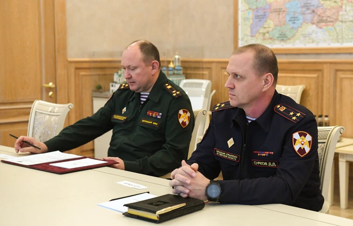 Заместитель командующего Центральным округом Росгвардии полковник Дмитрий Хлобыстов представил личному составу территориального управления ведомства нового руководителя — полковника полиции Дмитрия Суркова. ➡Полковник Дмитрий Хлобыстов, обращаясь к личному составу, отметил многолетний опыт службы на руководящих должностях полковника полиции Дмитрия Суркова, а также пожелал сотрудникам и военнослужащим территориального управления успехов в ходе выполнения служебно-боевых задач. ➡Кроме этого, в областной администрации состоялась встреча врио губернатора региона Виталия Королёва с заместителем командующего Центральным округом Росгвардии полковником Дмитрием Хлобыстовым и руководителем территориального управления ведомства полковником полиции Дмитрием Сурковым. ➡В рамках встречи представители Росгвардии обсудили с врио главы региона вопросы дальнейшего взаимодействия в деле обеспечения безопасности жителей и гостей Тверской области. ⚔️ Росгвардия. Центральный округ 👍 Центральный округ