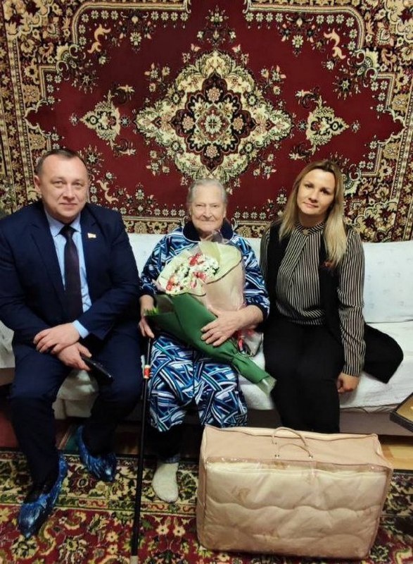 Со 101-летием ветерана, труженицу тыла Татьяну Александровну Тхореву поздравили власти города, Центрального района, социальных служб, РОО "Белая Русь", ГП "Центральное".