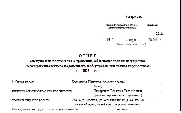 Сегодня заполняла отчеты. В этом году у меня их два – по имуществу Вики и по имуществу Васи. Сама по себе форма отчета не сложная. Я в прошлом бухгалтер, и не с такими отчетами справлялась). Тем не менее, есть нюансы в заполнении, на которых могут споткнуться даже опытные опекуны. Чтобы избежать возврата документа на доработку, разберем типичные ошибки, которые чаще всего допускают опекуны. В общем случае отчет опекуна за 2025 год необходимо подать до 1 февраля 2026 года. Но в одном случае отчет придется сдать раньше. Речь идет о случае, когда подопечному в январе исполняется 18 лет. Напомню, сдать отчет опекуна нужно в течение трех дней со дня, как подопечному исполнилось 18 лет. Покажу на примере, почему в этом случае отчет за 2025 год придется подавать раньше.