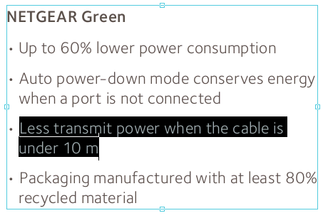 Логика начала крошиться почти сразу, т. к. по смыслу выходило, что производитель хвастается не тем, что мощность сигнала будет меньше, а тем, что при меньшей длине кабеля энергопотребление будет ниже. И вот это уже вполне вписывается в концепцию NETGEAR Green.