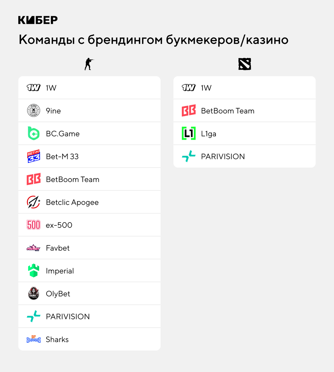 Пытались купить даже Spirit. В конце июля 2025-го команда BC.Game, связанная с одноименным криптоказино, выкупила Симпла из NAVI (оставалось полгода по контракту) за $500 тысяч. В октябре к нему за немалые деньги присоединился старый друг – Электроник. Тогда же и Tn1r говорил об интересе BC.Game. Даже с двумя легендами в составе результаты не впечатляли, а о тир-1 турнирах не могло идти и речи. В итоге BC.Game подписала кор из Saw, чтобы подняться в рейтинге. А 14 января главный редактор HLTV поделился инсайдом, что организация пыталась выкупить игроков Spirit. Аккаунт команды в Х косвенно подтвердил эту информацию (хотя, может и пошутил). Неужели букмекеры подомнут киберспорт, и скоро не останется других команд? Попробуем разобраться в этом материале. Я изучил все 258 команд в рейтинге HLTV. Для каждой проверил, содержит ли название или логотип отсылки к спонсору из сферы iGaming. Со всеми натяжками и поблажками получилось 12 команд. Важно: это не количество команд, спонсируемых букме