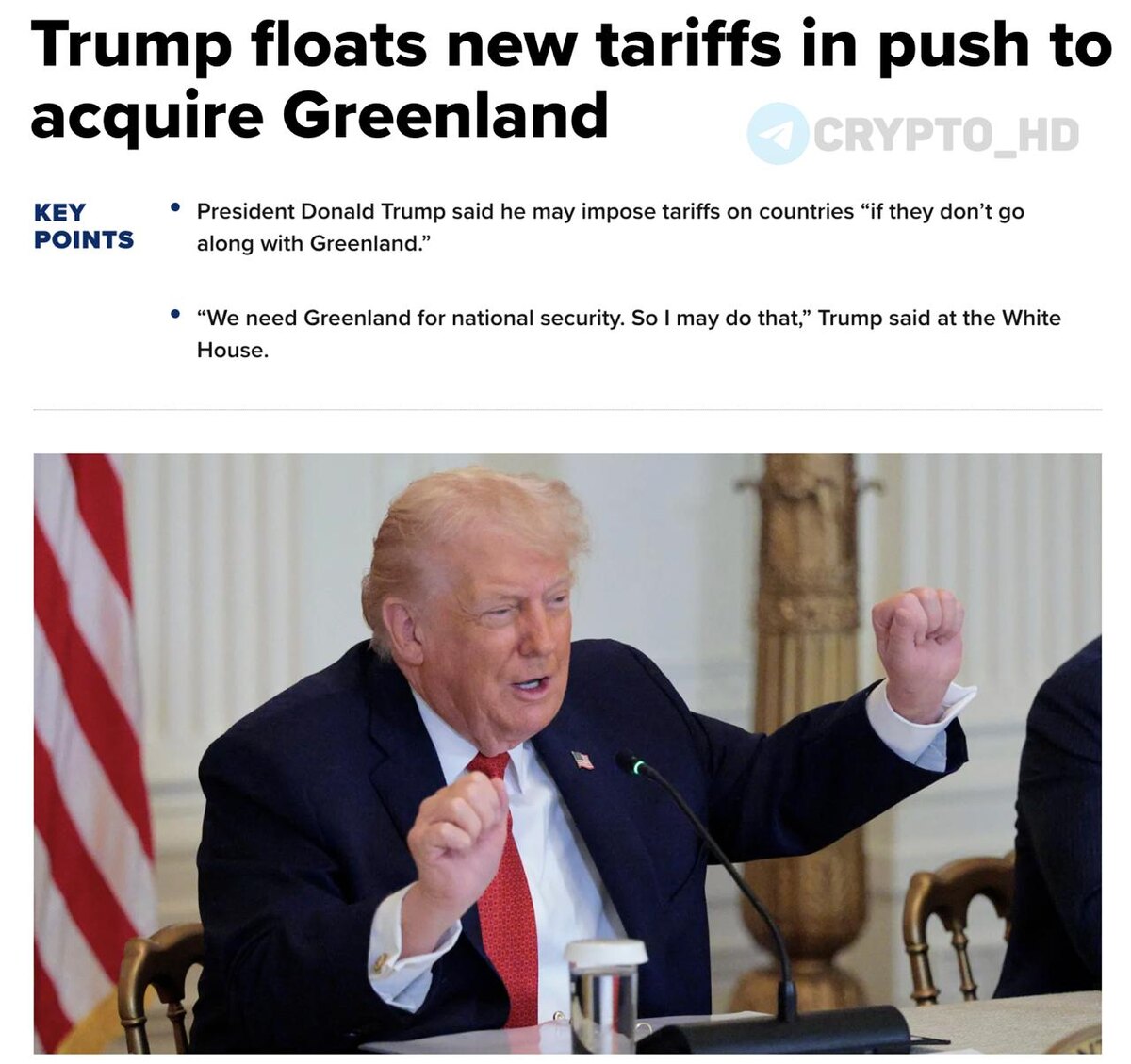 🇺🇸🇬🇱 Дональд Трамп заявил, что может ввести тарифы против стран, чье руководство не пойдет навстречу США по вопросу Гренландии.