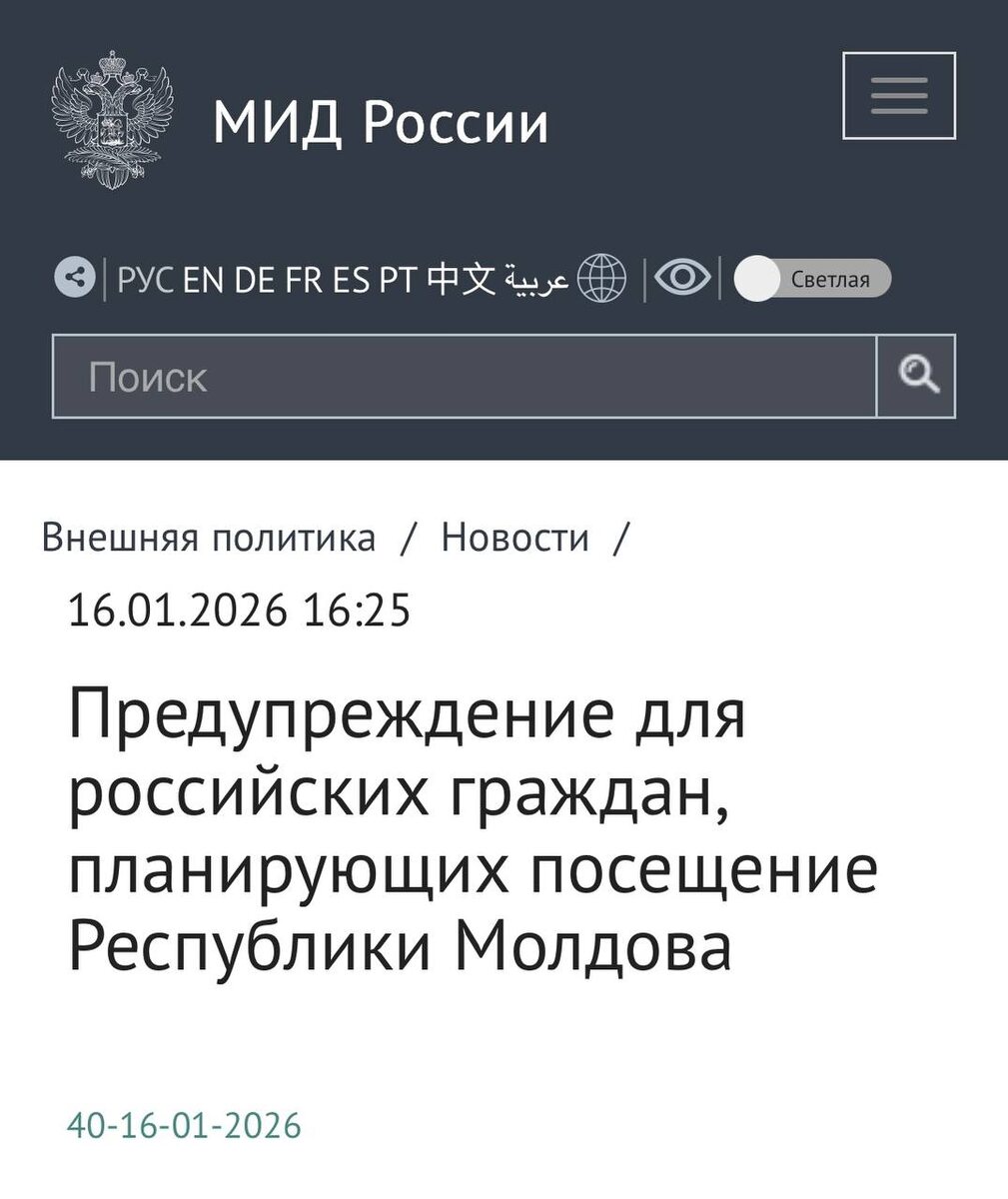 ‼️ МИД РФ настоятельно рекомендует россиянам воздерживаться от поездок в Молдавию