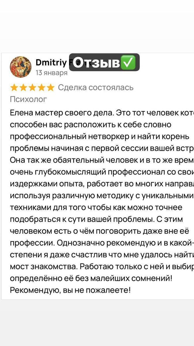 Когда мои клиенты выходят из жизненного тупика, и дают мне такую ценную обратную связь, как этот глубокий отзыв, я всегда очень рада, понимаю, что я на своем месте💫 #отзыв@elenagurovaa
