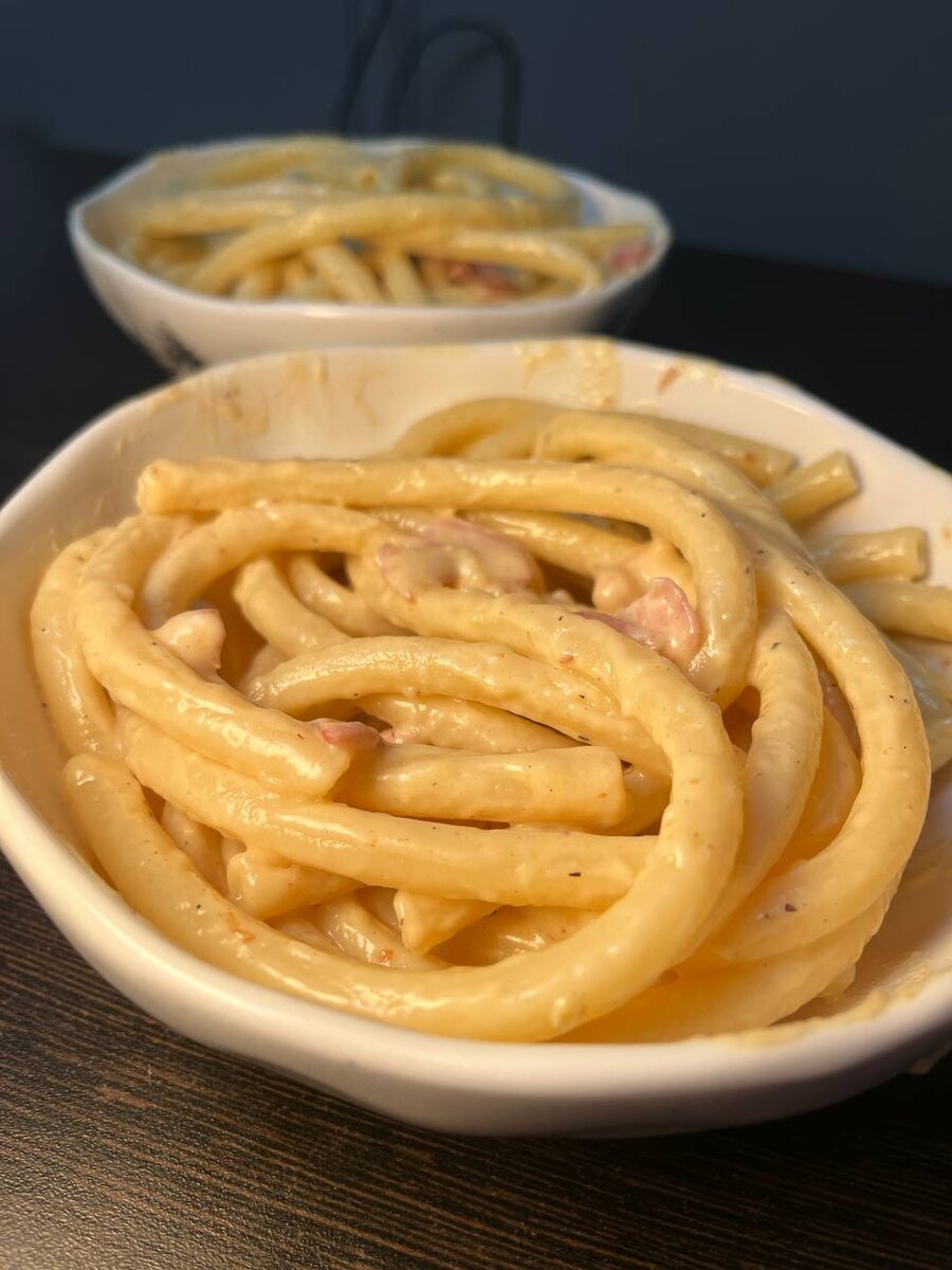 Честно скажу, когда прихожу в ресторан, взгляд всегда падает на три блюда: пасту, пиццу или бургер🤣 Но я стараюсь заказывать то, что не приготовлю дома. А вот карбонара — как раз то, что дома получается идеально и даже вкуснее. Нам понадобится: • спагетти — 200–250 г • бекон — 100–150 г • яйца — 3 шт • тертый сыр — 100 г • черный перец — по вкусу Как готовить: • Отвариваем спагетти по инструкции на упаковке. • Бекон нарезаем ломтиками, обжариваем до хруста. • В отдельной миске смешиваем три желтка, тертый сыр и щепотку перца — получается густая сырно-яичная масса. • К обжаренному бекону добавляем макароны и немного воды из кастрюли (1–2 половника — в зависимости от того, насколько густой хотите соус). • Снимаем с огня, быстро вмешиваем сырно-яичную смесь. Паста получается нежной, насыщенной и ароматной. Домашний вариант, который легко готовить и невозможно не полюбить. КБЖУ (на 100 г): 230 ккал • Б 10 г • Ж 13 г • У 16 г 🍛🍛🍛