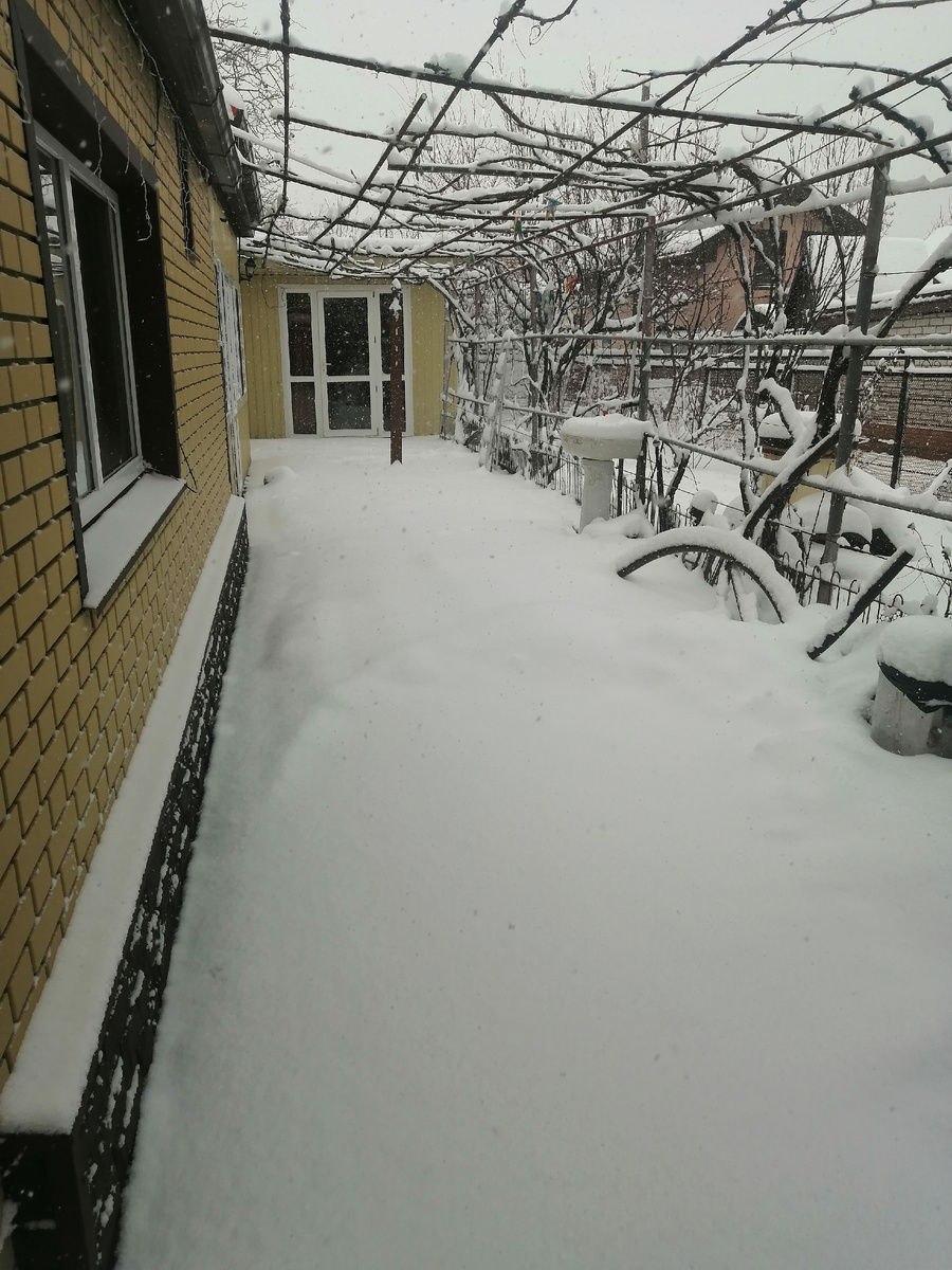У нас целый день шёл снег.