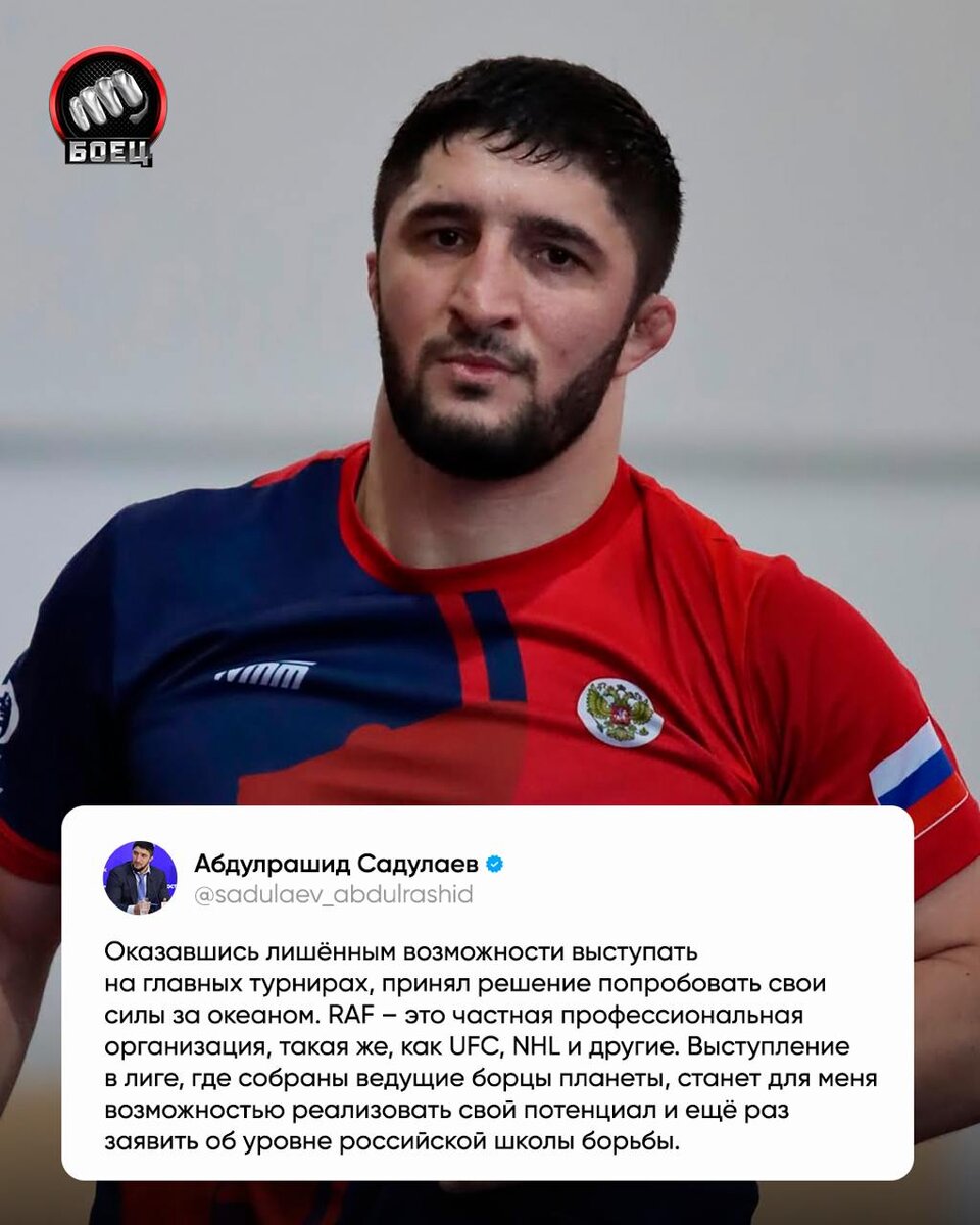 🤼 🗣 Мое подписание контракта с борцовской лигой RAF порадовало болельщиков по всему миру, но, как оказалось, для кого-то эта новость стала печальной. 🗣 С момента, как российская сборная оказалась под санкциями, я неоднократно получал и продолжаю получать предложения о смене спортивного гражданства от разных стран. 🗣 Но как капитан сборной России, я остаюсь верен своей стране и намерен продолжать представлять ее на международной арене, в том числе в рамках RAF. Приоритетом для меня всегда были и остаются официальные внутренние и международные старты – чемпионаты России, Европы и мира. 🗣 Спортивный век короткий. Я отдал этому делу всю свою молодость, и на пике карьеры, оказавшись лишенным возможности выступать на главных турнирах, принял решение попробовать свои силы за океаном. RAF – это частная профессиональная организация, такая же, как UFC, NHL и другие. Выступление в лиге, где собраны ведущие борцы планеты, станет для меня возможностью реализовать свой потенциал и еще раз з