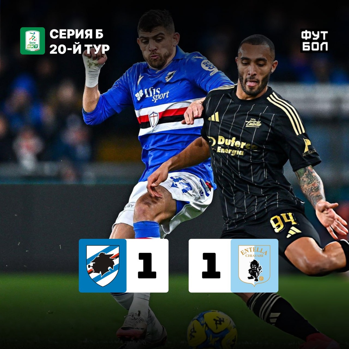 Счёт 1-1. Хозяева упустили возможность покинуть зону вылета, хотя и забили первыми - гол на счету Луиджи Керубини, который принадлежит Роме и находится в Сампе в аренде. За 15 минут до конца матча защитник гостей Лука Пароди сравнял счет, но на пятой добавленной минуте еще один игрок обороны Деннис Хаджикадунич, только уже в составе Сампдории, мог принести победу генуэзцам, но из убойной позиции пробил во вратаря. Если вам показалась его фамилия знакомой - не удивительно, ведь он отыграл несколько сезонов в Ростове и технически всё еще принадлежит ему, так как свой контракт он лишь приостановил в 22-м году с разрешения ФИФА.