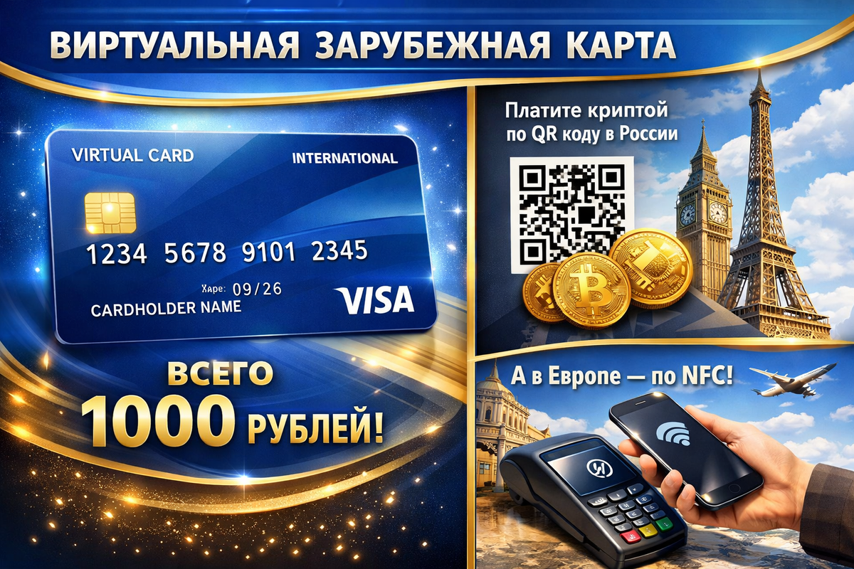 Представьте: вы стоите в очереди в «Пятёрочке», достаёте телефон, подносите к терминалу — и платите виртуальной картой, как будто никаких ограничений никогда не существовало. Звучит как фантастика? Нет, это реальность с новой виртуальной Visa, которую можно оформить прямо сейчас всего за 1000 рублей вместо 7000. Главное преимущество — пополнение по СБП прямо из России. Никаких обменников, никаких лишних комиссий сверх предусмотренных. Деньги приходят мгновенно, и вы сразу можете тратить их где угодно: на подписки Netflix, Spotify, App Store или даже в обычных магазинах России через NFC или QR. С этой картой Visa вы получаете настоящий мультивалютный счёт: храните доллары, евро или даже крипту, переводите между валютами внутри онлайн-банка без потерь. Лимит пополнения — до $50 000, так что серьёзные платежи и переводы по всему миру больше не проблема. Оформление занимает пару минут: переходите по ссылке, создаёте личный кабинет, вносите стартовый депозит $25 (из них $20 сразу на баланс