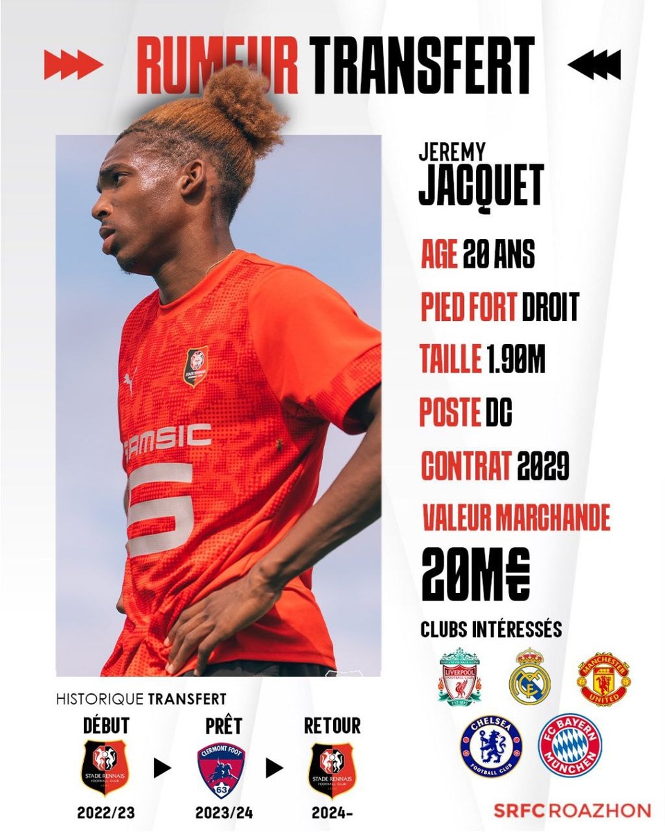 Инсайдеры снова мусолят слухи об интересе топ-клубов к Жереми Жаке. Ренн не намерен отпускать игрока в зимнее трансферное окно!