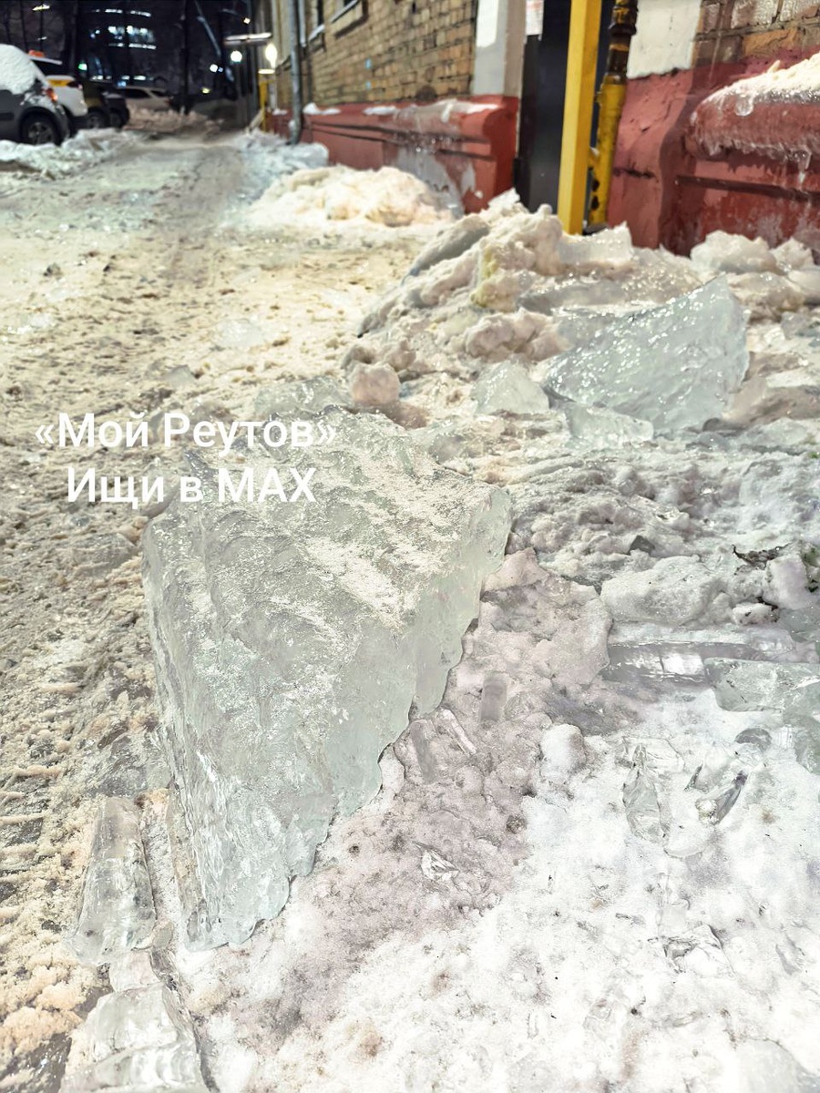 ‼️Вот такие глыбы льда несколько дней висели на Войтовича 2, угрожая прохожим. Каждый кусок по несколько килограммов Будьте аккуратны! 📲 «Мой Реутов» в MAX