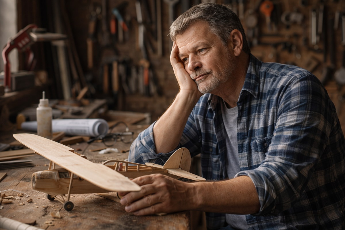 Не героически. Не «начал новую жизнь». Просто пришёл туда, где всё подчиняется моим рукам: стол, инструменты, кусочки дерева, чертёж, маленькие детали. Я достал коробку с недоделанной моделью самолёта — тем самым, который когда-то собирал ещё мальчишкой, пока не начались «надо», «должен», «семья прежде всего».