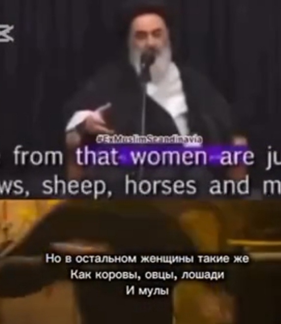 «Женщина в исламе это животное по типу овцы или коровы, которое алах создал только ради использования мужчиной» – заявил исламский ученый.У женщины только одна обязанность рожать. Она не иметь право писать, читать, да и смотреть двумя глазами тоже нельзя, хватит одного. Ученый заявил, женщин создали красивыми, чтобы они не пугали мужчин