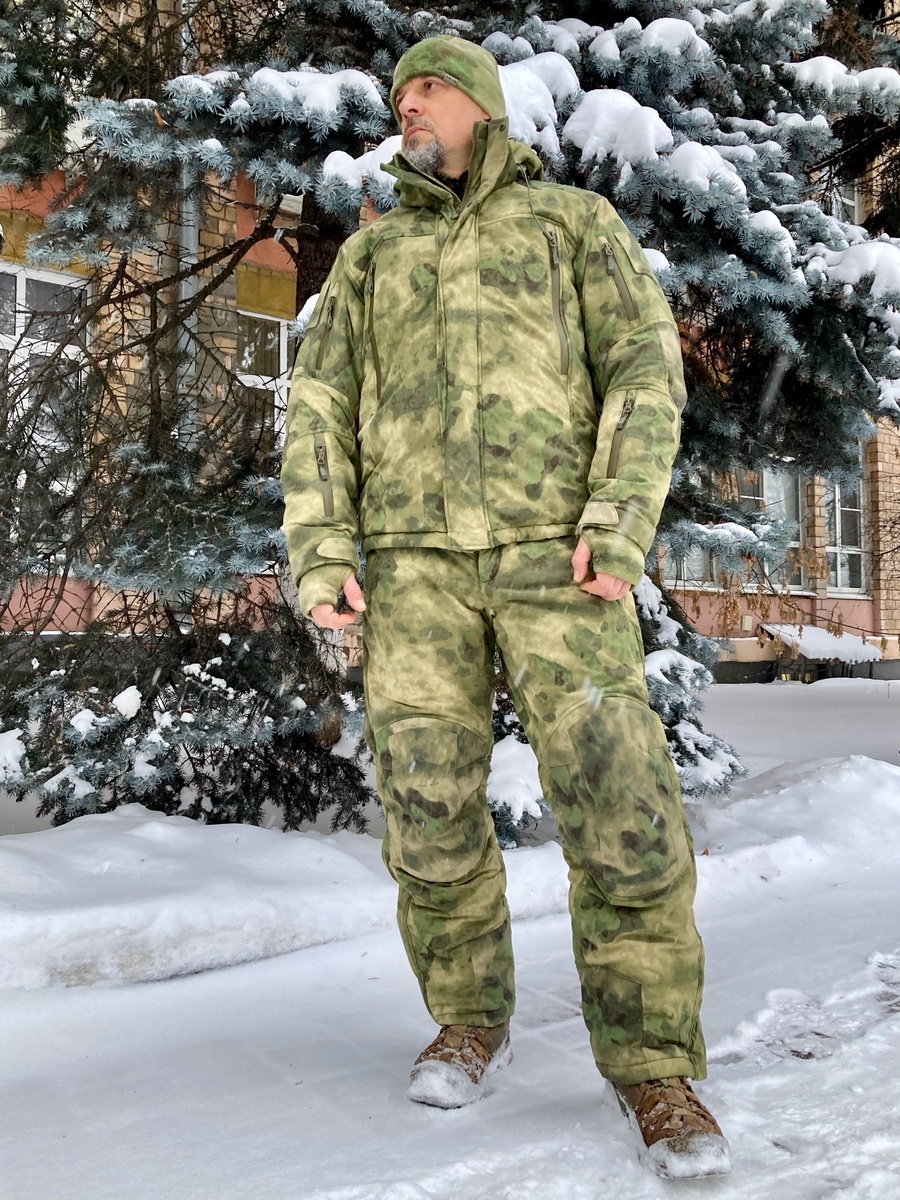 Комплект «Ирбис 3.0» состоит из куртки и брюк, доступных в черном цвете, цвете Grape Leaf и камуфляже A-TACS FG, который вы видите на фото.