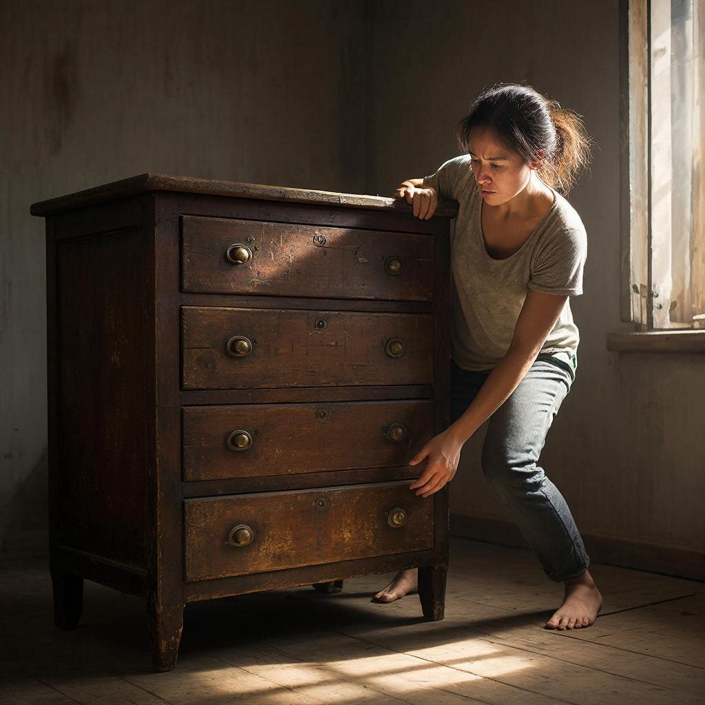 Дошла очередь до самой большой комнаты — той самой, где жила бабушка. Мебель, тяжелая, дубовая, советских времен, нужно было вынести. Рабочие легко справились со столом, кроватью, креслами. Остался огромный, невероятно тяжелый комод с зеркалом. «Этот монстр, барин, его куда?» — спросил прораб. «На выброс, — ответила Марина. — Он совсем старый, внутри все перекошено».