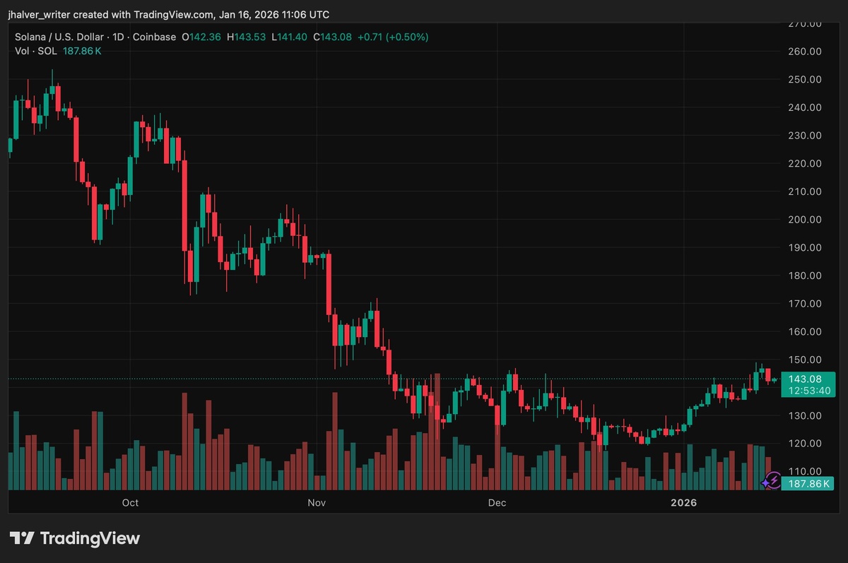 Цена SOL колеблется около ключевых уровней поддержки, несмотря на значительный сетевой рост Solana, включая расширение RWA до $1.15 млрд и рост институционального интереса. После недавнего падения ниже $145, токен тестирует зону $140-$141, где сходятся бычья линия тренда и поддержка Фибоначчи. 📊 Ключевые моменты: - Solana обрабатывает $1.6 трлн объема торгов, что составляет 12% крипторынка. - RWA экосистема Solana достигла рекордной оценки $1.15 млрд. - Сенатом США предложен законопроект "Clarity Act", который может реклассифицировать такие активы, как SOL, потенциально улучшая институциональный доступ. - 15 января спотовые Solana ETF зафиксировали чистый приток $23.57 млн. - Поддержка на уровнях $141-$140 и $132, сопротивление: $146 и $148.