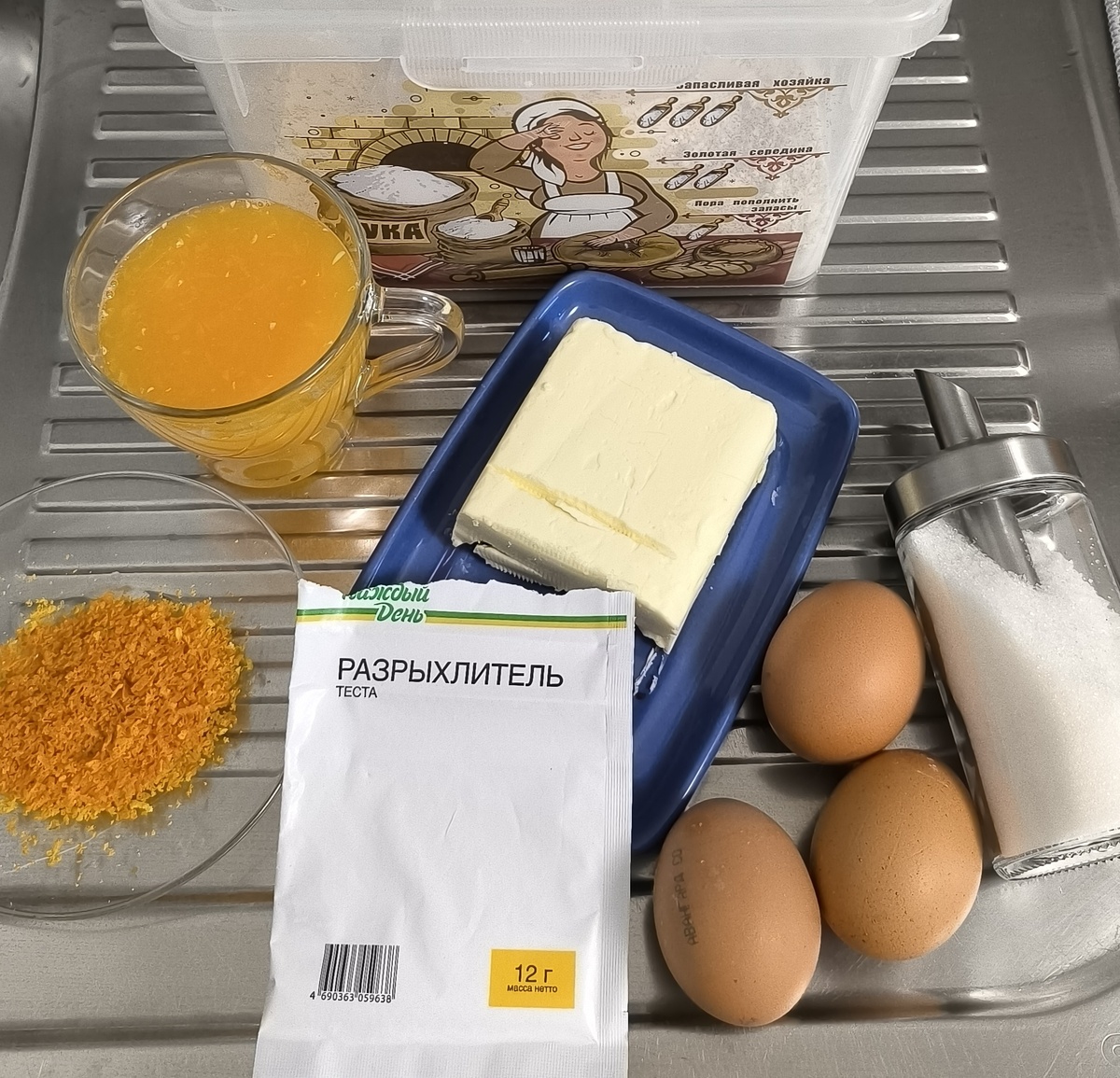 Апельсиновый сок выжмите заранее, цедру натрите на мелкой тёрке.